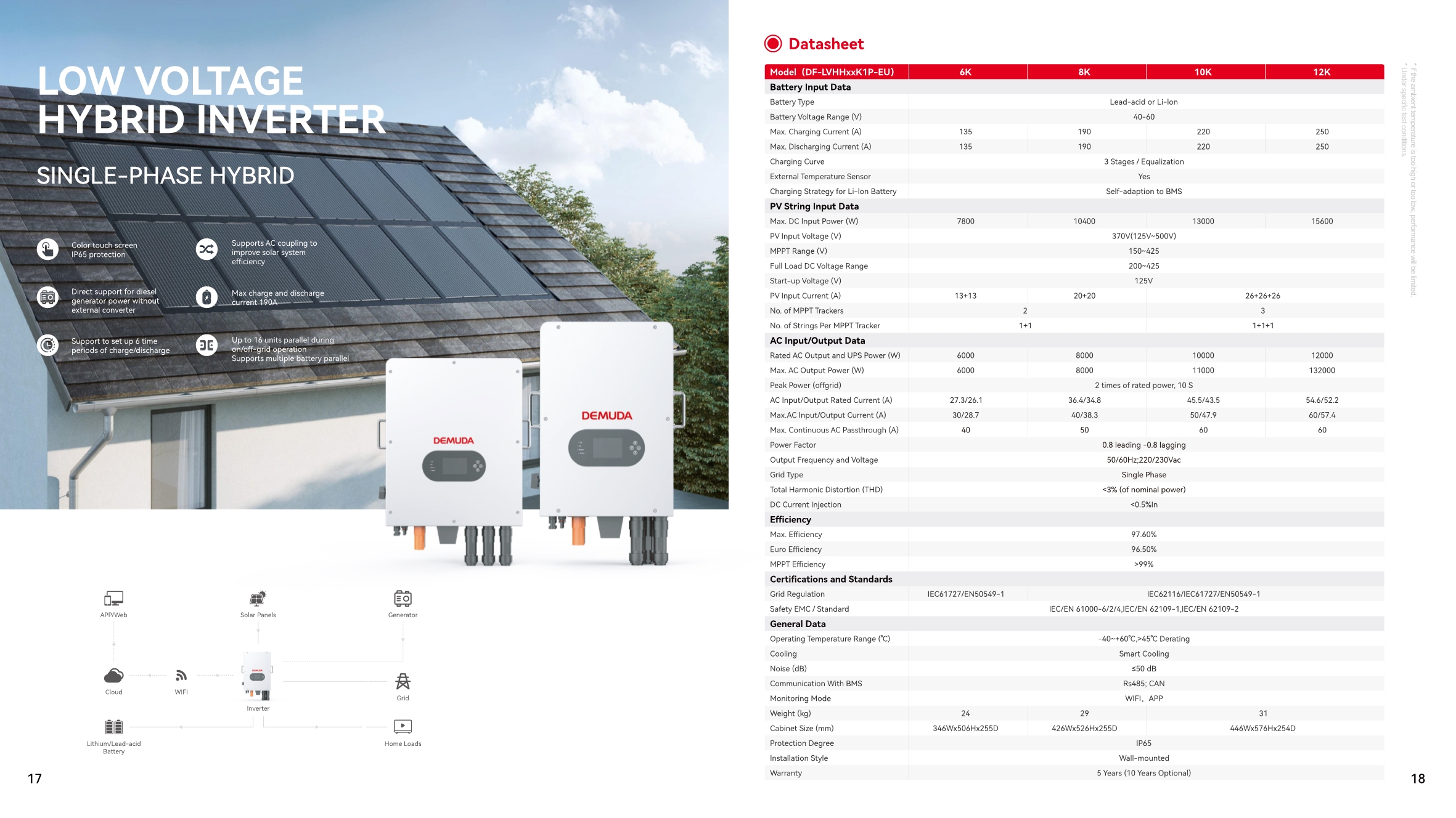 | Rated AC Output and UPS Powver (W) | 6000 | 8000 | 10000 | 12000 |