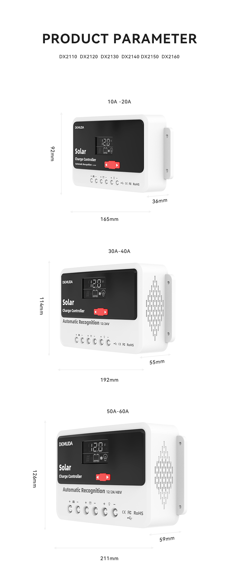 | System Voltage | 12V/24V/Automatic adaptation | 12/V24V/48V/Automatically adaptation | ||||