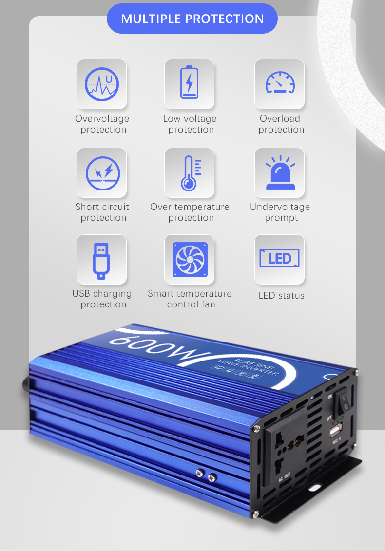 ●Input under voltage protection, input over voltageprotection, overload protection, short circuitprotection, over temperature protection.