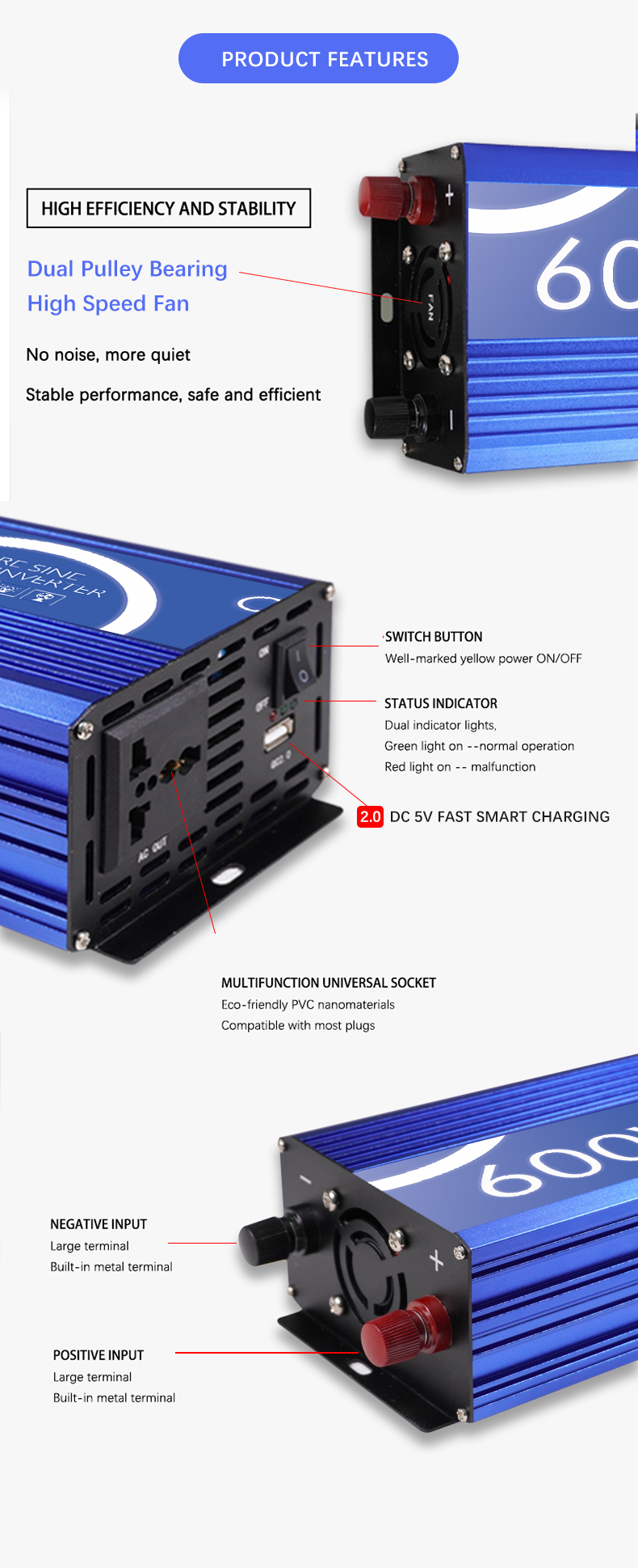 | Rated Power | 300W | 500W | 600W | 1000W | 1500W | 2000W | 3000W |