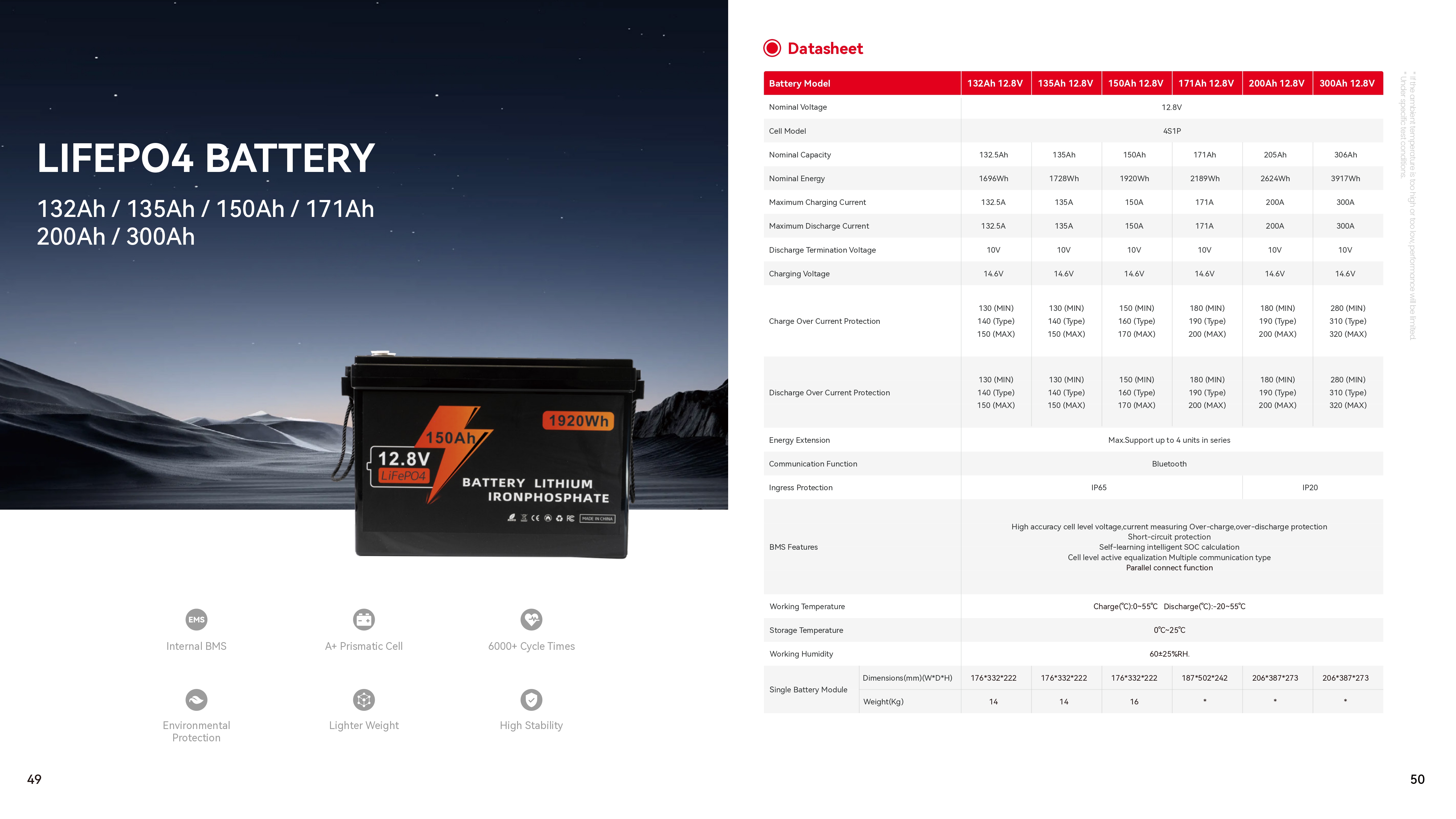 | Battery Model | 132A 12.8V | 135A 12.8V | 150A 12.8V | 171A 12.8V | 200A 12.8V | 300A 12.8V | |