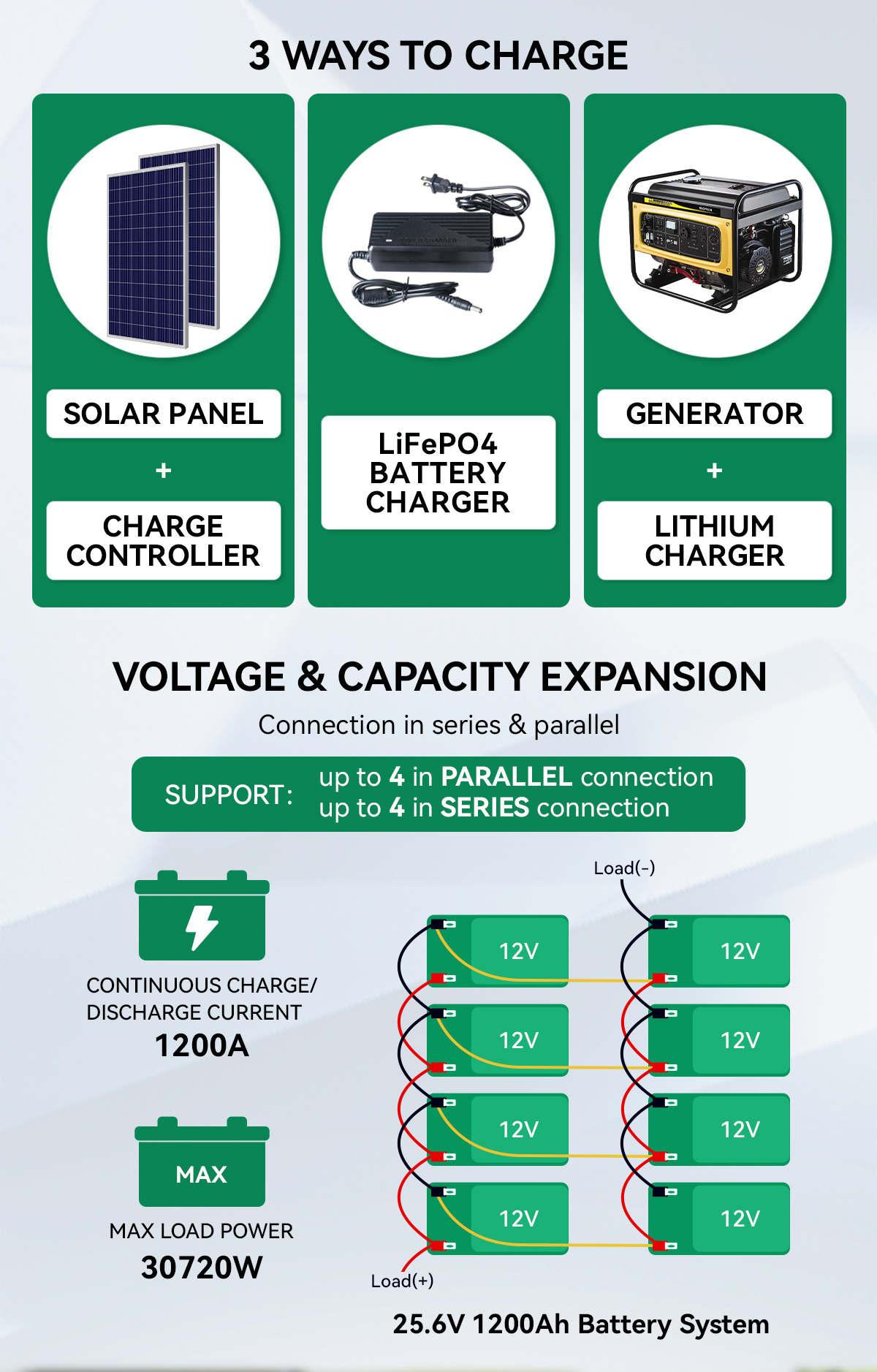 2. Deep Cycle: This battery pack is designed for deep cycle applications, making it ideal for solar energy storage systems and electric power systems.3. High Capacity: Available in various capacities including 200Ah, 300Ah, 80Ah, and 120Ah, providing ample power for different energy storage needs.4. Lithium Ion Technology: The battery pack utilizes lithium ion technology, which offers high energy density, longer cycle life, and lightweight design.5. Built-in BMS: Equipped with a built-in Battery Management System (BMS), ensuring safe and reliable operation by monitoring voltage, current, temperature, and other parameters.