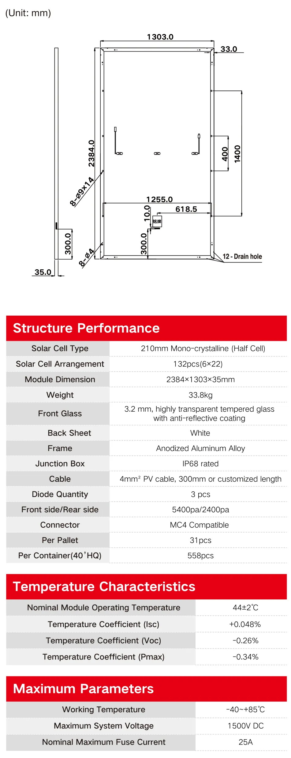 Module Dimension:2384×1303×35mm