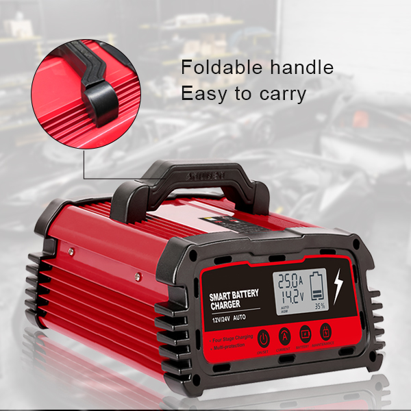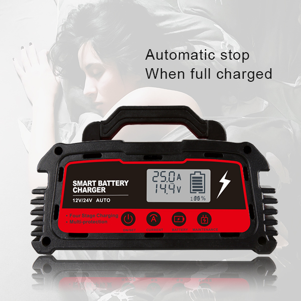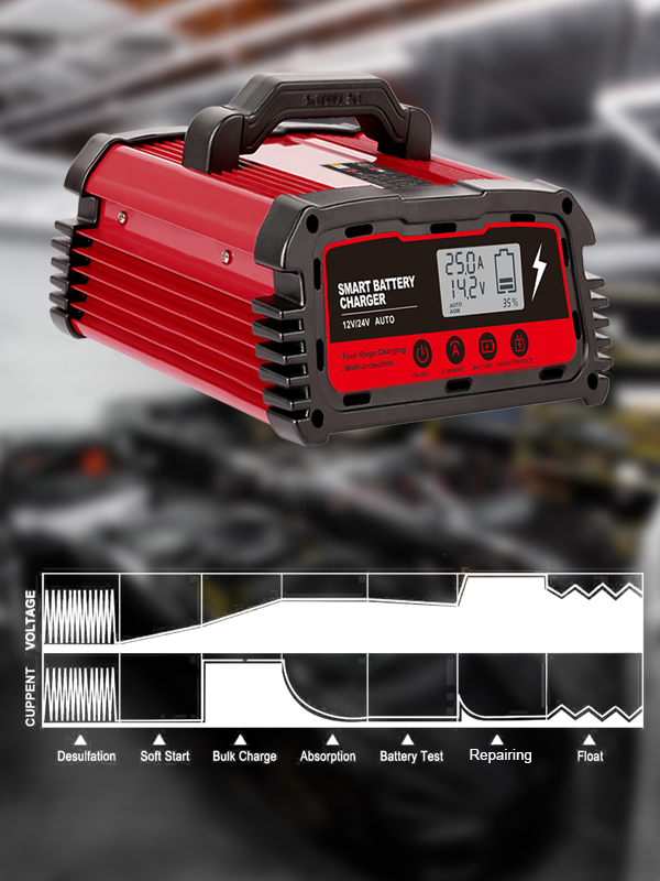 DC100A/200A/250A car battery charger is suitable for 12V/24V GEL and AGM batteries, and cannot charge lithium batteries. Can automatically recognize battery voltage, PWM pulse modulation four stage charging; It has reverse connection, short circuit, and overcharge protection, and the intelligent temperature control fan automatically starts when the body temperature exceeds 113 ° F. It also includes a repair mode that can handle severely depleted batteries with voltages below 8V, but if the battery is completely damaged, it cannot be repaired.
