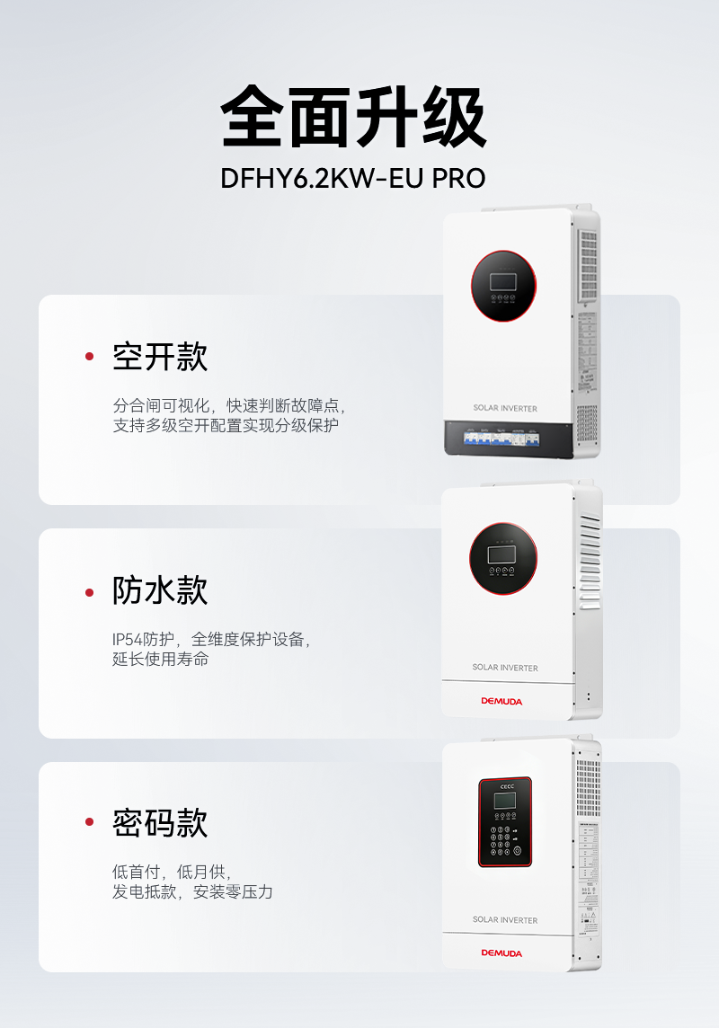 参数项 | DFHY6.2KVA-EU | DFHY6.2KW-EU PRO | 提升幅度 |