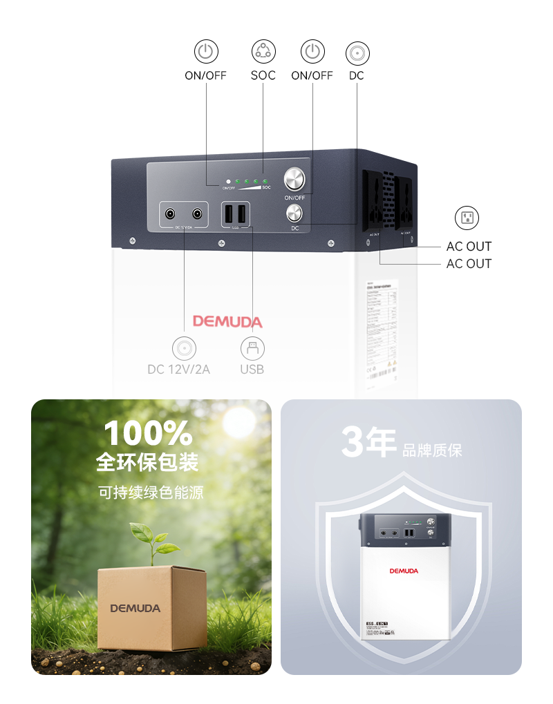 德姆达500W 1000Wh家用太阳能储能系统集成了太阳能发电、储能和供电功能。该系统主要由逆变器和磷酸铁锂储能电池组成,可以为家庭和小型商业场景提供稳定的电力。该系统支持离网或备用电源应用,在停电期间提供持续供电。它适用于住宅、农场、商业和偏远地区,帮助用户降低电费,提高能源独立性。