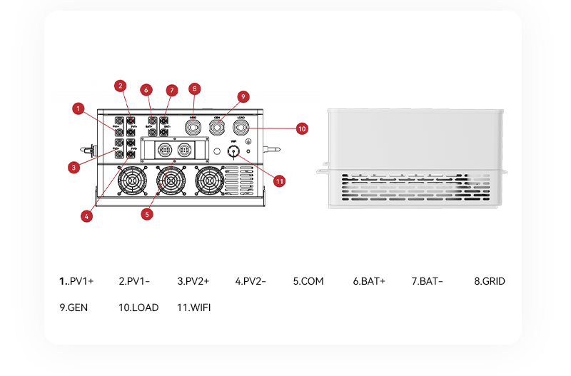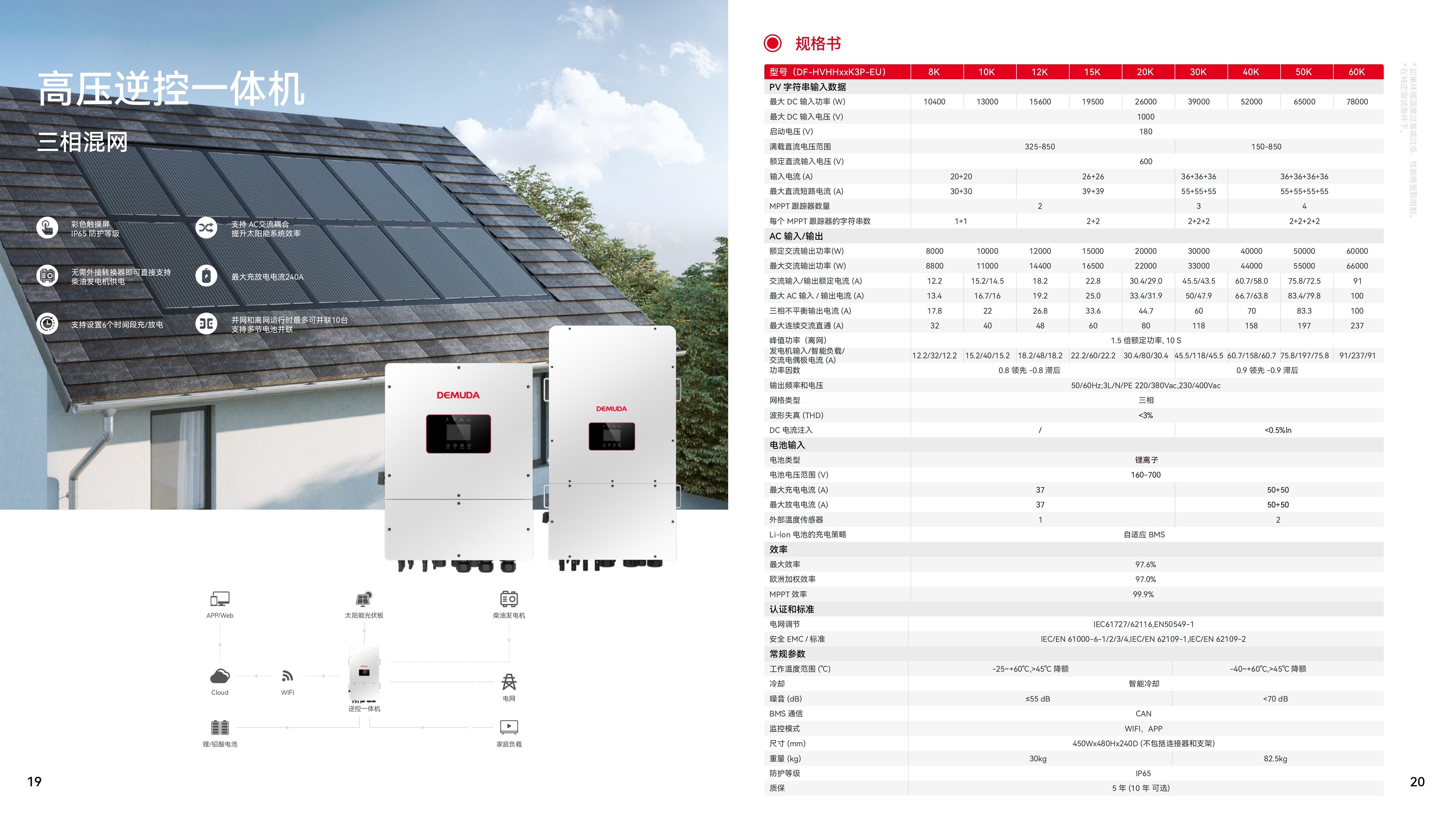 ●兼容高压电池(160-700V)的三相混合逆变器