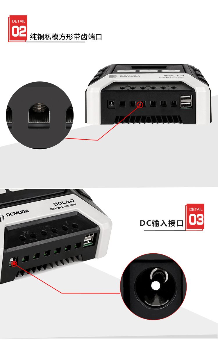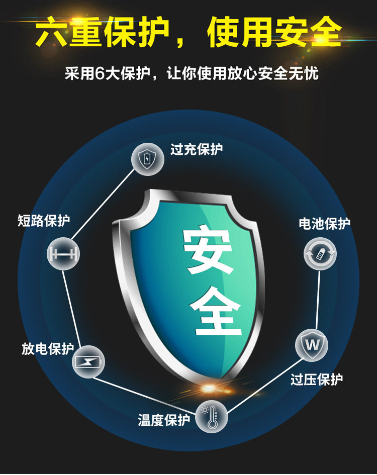 全方位保护功能:电池防反充保护、电池反接保护、电池欠压保护、过载保护、短路保护。