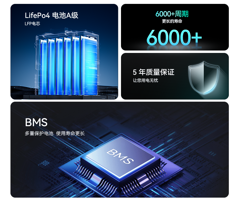 ● 安全可靠:安全的磷酸铁锂电池
