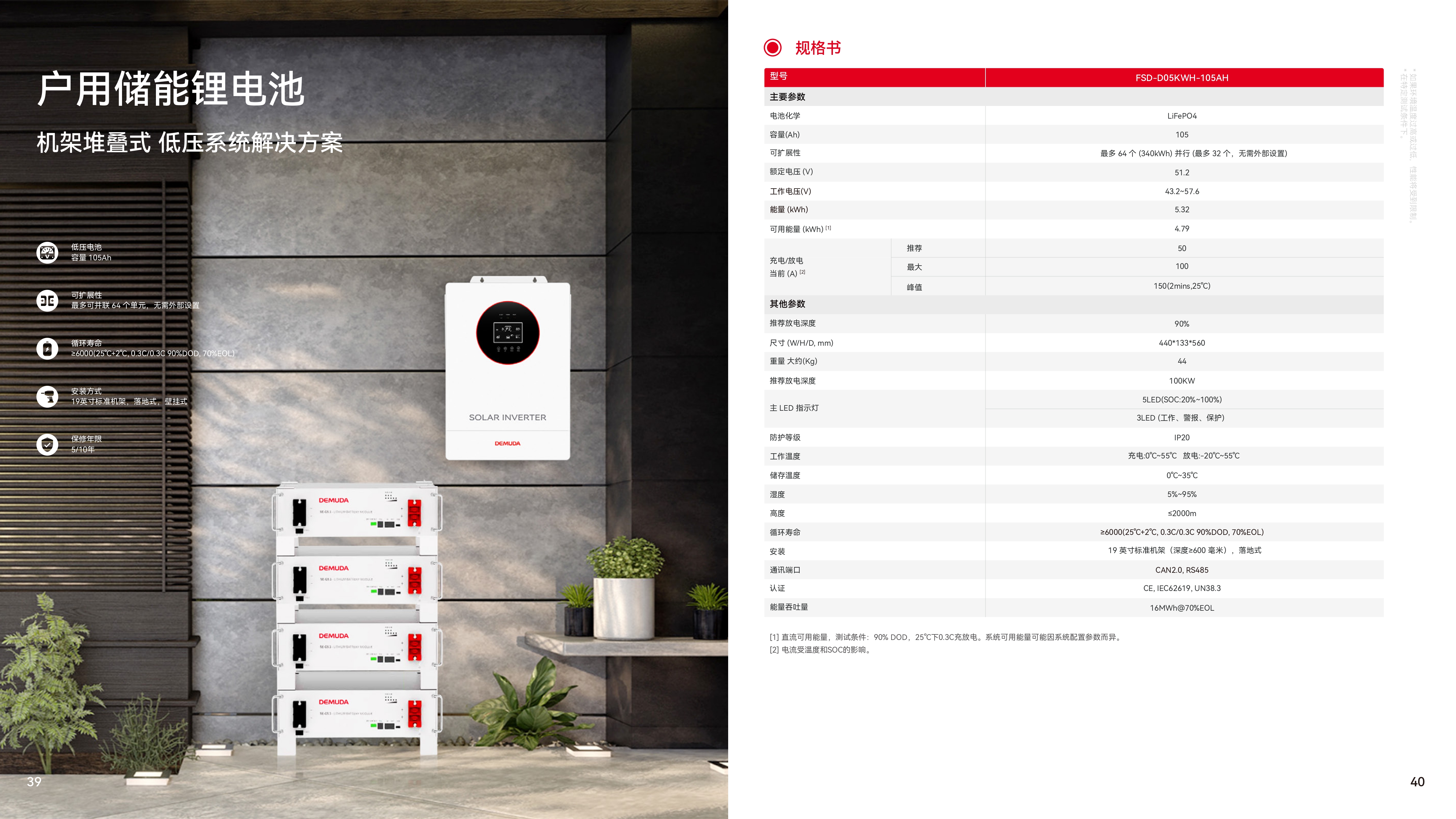 ●循环寿命:≥6000(25℃+2℃,0.3℃/0.3℃,90%DOD,70%EOL)