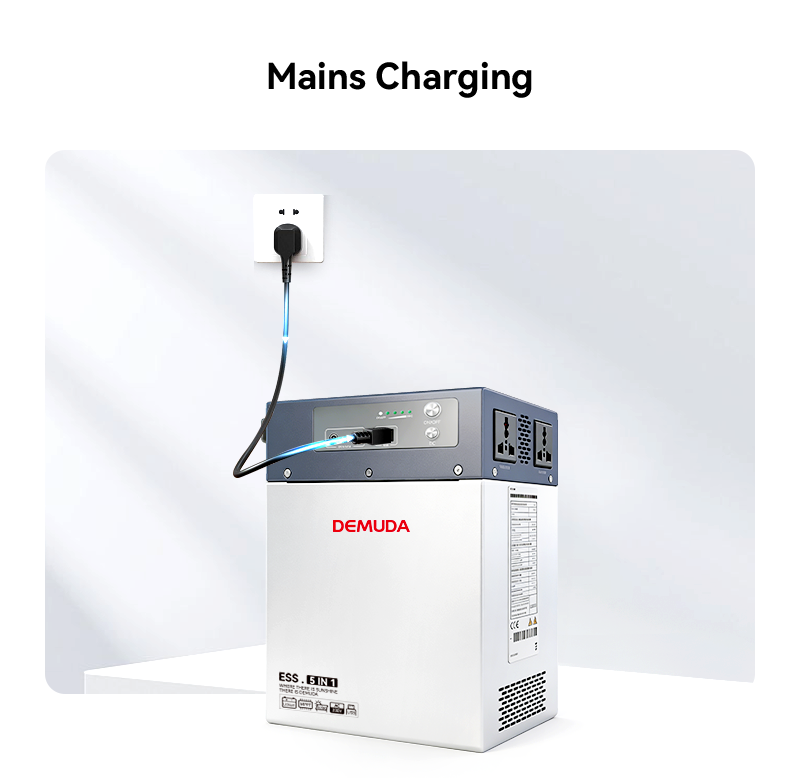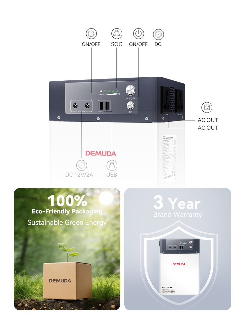 DEMUDA 300W solar portable energy storage power station adopts lithium iron phosphate batteries with a cycle life of 8000 times. It supports multiple charging methods such as solar energy and mains power, and outputs 100V/220V AC power. It is compatible with multiple country plugs and suitable for indoor and outdoor emergency power supply. It has multiple safety protections. The factory has 20 years of experience in new energy production and supports OEM/ODM customization, with a good reputation.