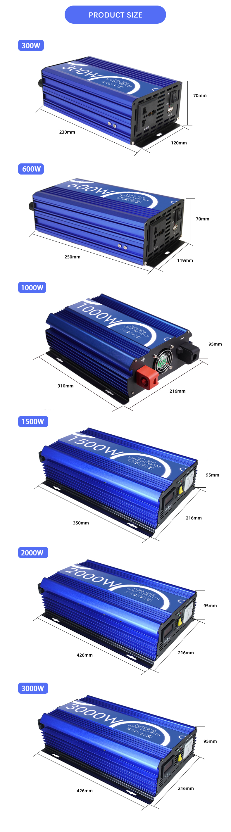 | Rated Power | 300W | 500W | 600W | 1000W | 1500W | 2000W | 3000W |