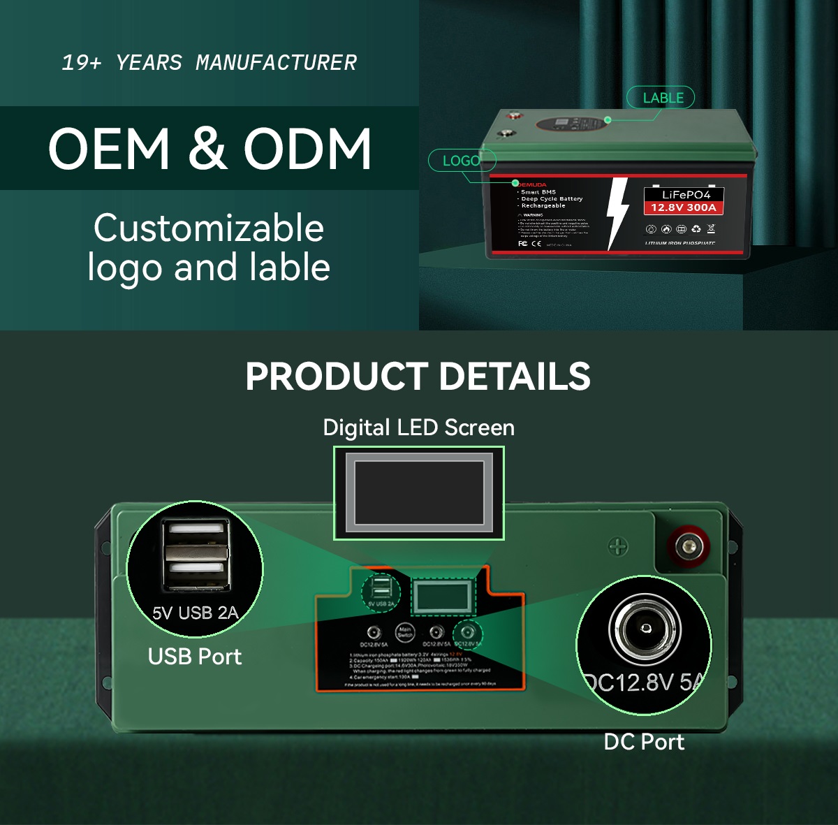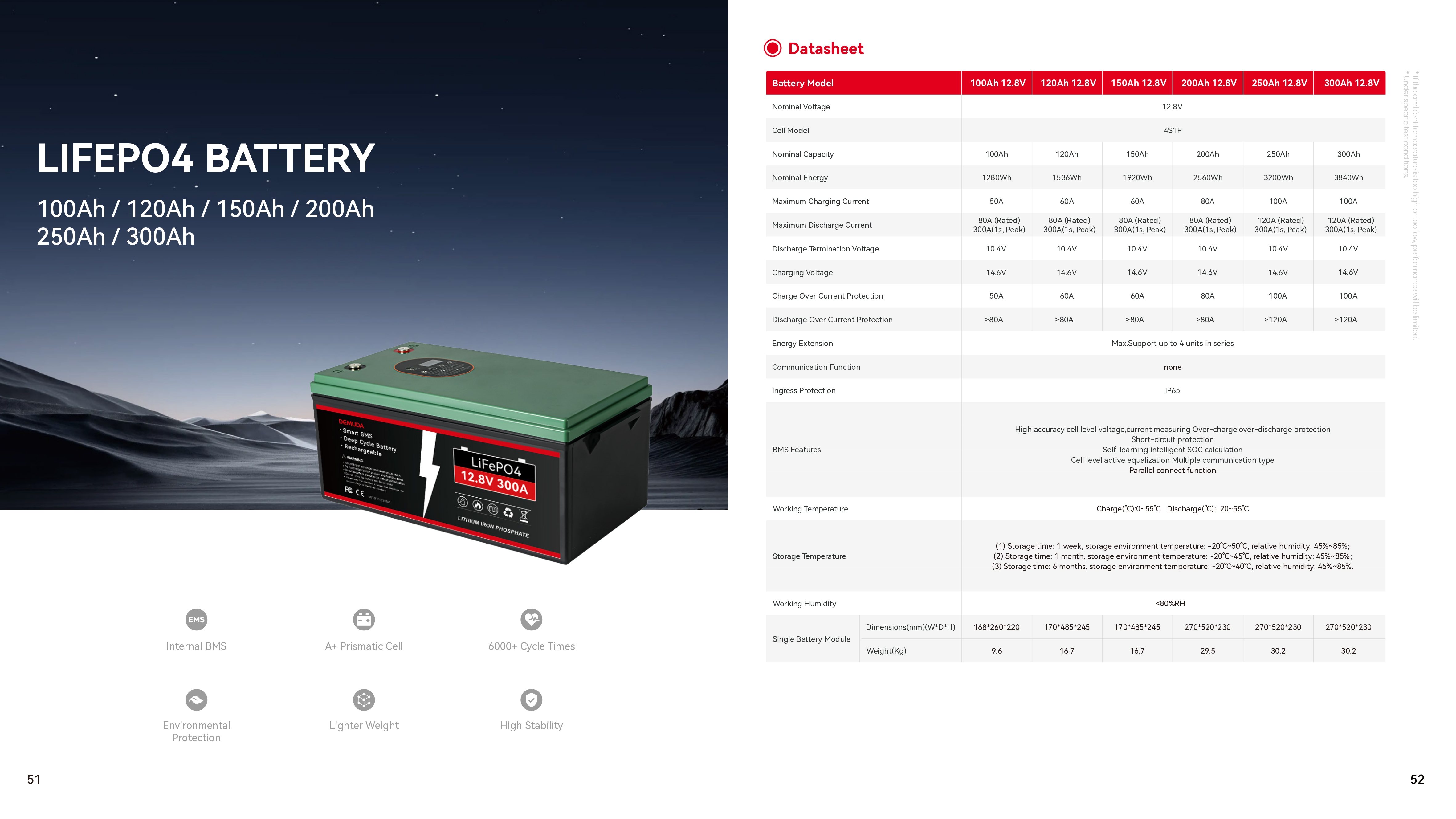 2. Deep Cycle: This battery pack is designed for deep cycle applications, making it ideal for solar energy storage systems and electric power systems.3. High Capacity: Available in various capacities including 200Ah, 300Ah, 80Ah, and 120Ah, providing ample power for different energy storage needs.4. Lithium Ion Technology: The battery pack utilizes lithium ion technology, which offers high energy density, longer cycle life, and lightweight design.5. Built-in BMS: Equipped with a built-in Battery Management System (BMS), ensuring safe and reliable operation by monitoring voltage, current, temperature, and other parameters.