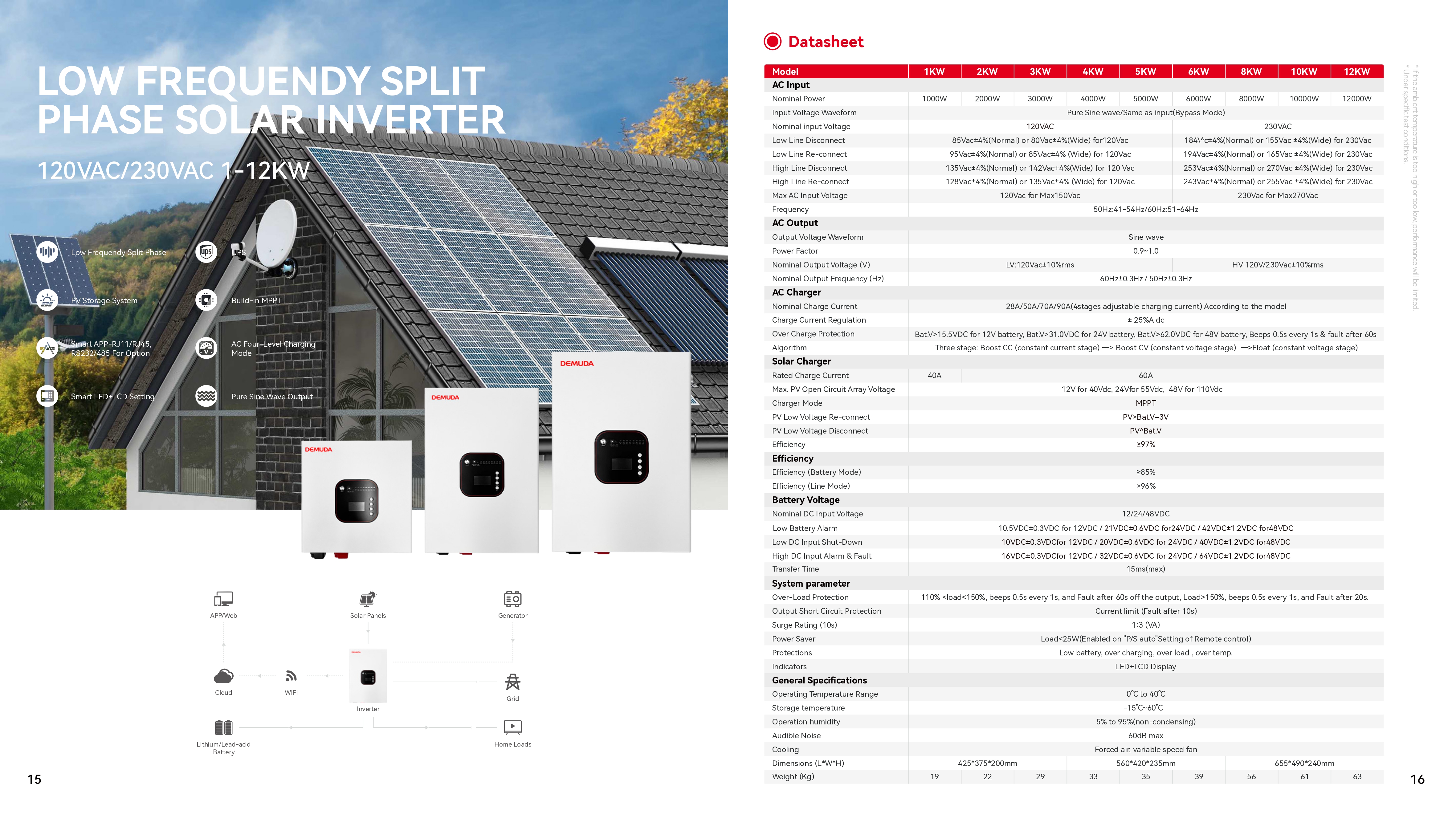 | Model | 1KW | 2KW | 3KW | 4KW | 5KW | 6KW | 8KW | 10KW | 12KW |