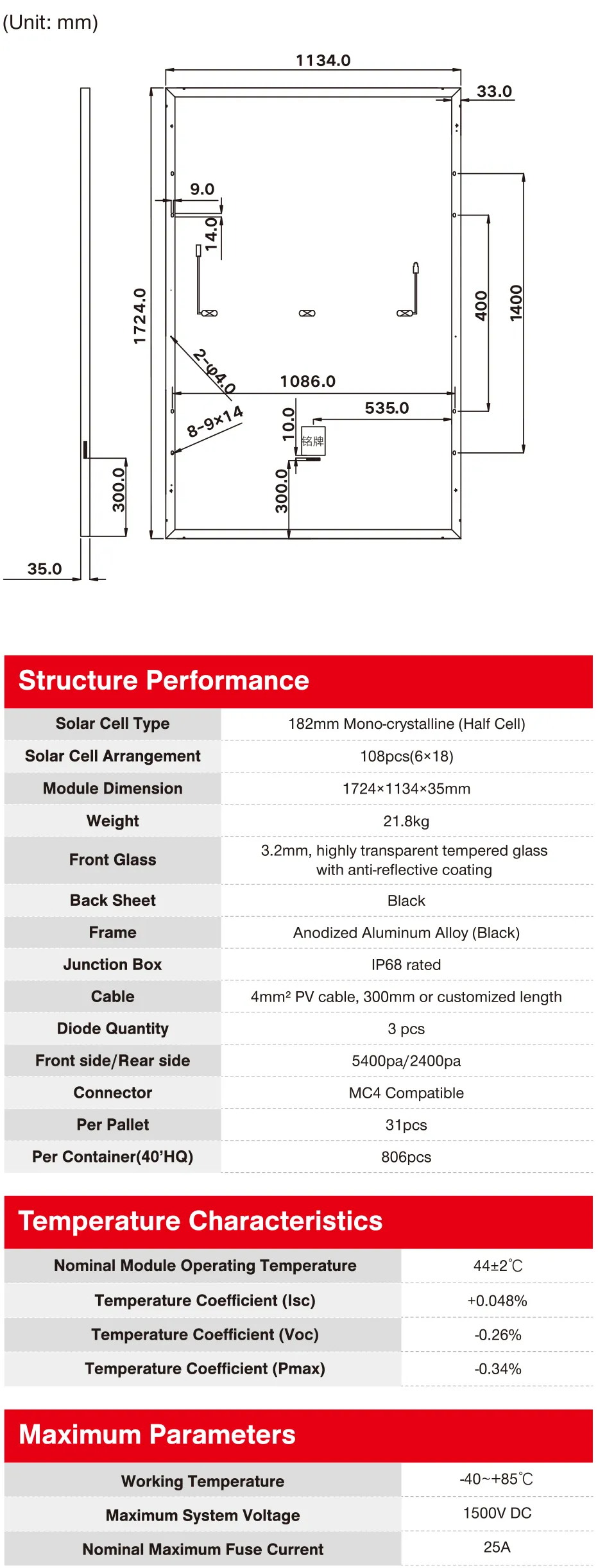 Module Dimension:1724×1134×35mm