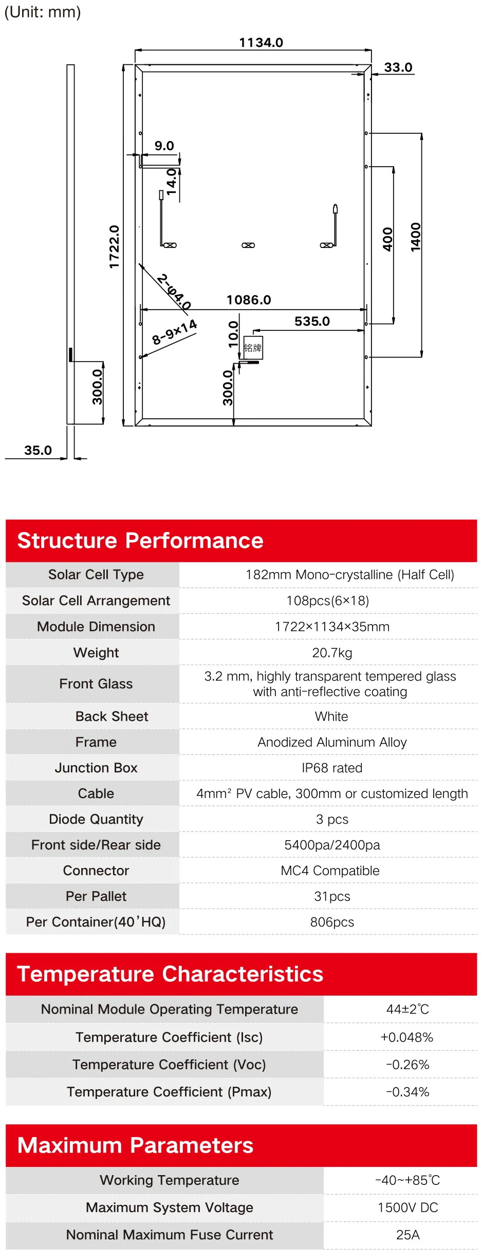 Module Dimension:1724×1134×35mm