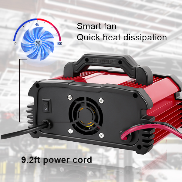 DC100A/200A/250A car battery charger is suitable for 12V/24V GEL and AGM batteries, and cannot charge lithium batteries. Can automatically recognize battery voltage, PWM pulse modulation four stage charging; It has reverse connection, short circuit, and overcharge protection, and the intelligent temperature control fan automatically starts when the body temperature exceeds 113 ° F. It also includes a repair mode that can handle severely depleted batteries with voltages below 8V, but if the battery is completely damaged, it cannot be repaired.